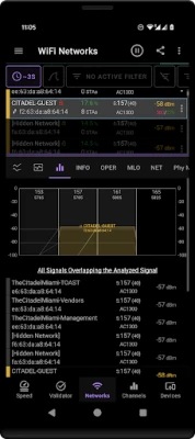 analiti biedt een ongekend scala aan gespecialiseerde instrumenten om elke hoek van uw netwerk te belichten. Voer grondige snelheidstests uit, compleet met bufferbloat-analyse, dankzij methoden als iPerf3. Duik diep in de bezetting en interferentie van Wi-Fi-kanalen met de geavanceerde analysator, die zelfs de gemeten luchttijd blootlegt. Krijg gedetailleerde inzichten in signaalsterkte en configuratie, en valideer uw connectiviteit met configureerbare checklists die exact aangeven waar de pijnpunten zitten. Bovendien monitort analiti continu roaminggebeurtenissen en netwerkovergangen, zodat u de impact daarvan op uw verbinding kunt analyseren.