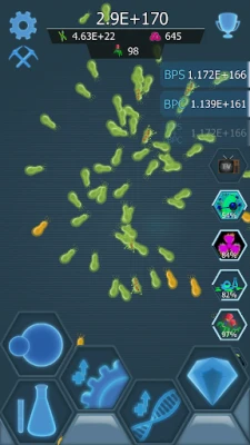 Ontdek een diepgaand evolutiesysteem dat je kolonies naar ongekende hoogten tilt. Ontgrendel tientallen krachtige upgrades en strategische verbeteringen die de productiviteit en veerkracht van je bacteriën vergroten. Voer grensverleggend onderzoek uit naar nanotechnologie om de sterkste vijanden te neutraliseren en zeldzame mineralen te ontginnen die de mutatie van je organismen versnellen. De strijd is eindeloos, want steeds evoluerende superbacteriën dagen je uit en houden het spel dynamisch en fris. Verdien tal van prestaties terwijl je nieuwe mijlpalen bereikt in je zoektocht naar absolute suprematie.