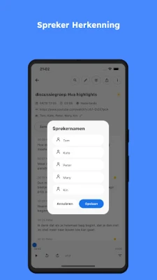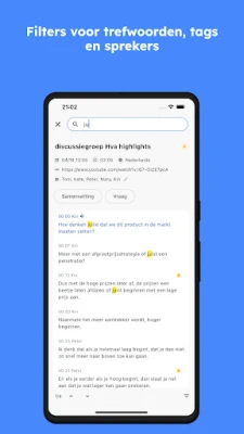 SoundType AI onderscheidt zich met intelligente functionaliteiten die uw interactie met audio revolutioneert. Stel u voor dat u in complexe groepsdiscussies eenvoudig sprekers kunt identificeren en labelen, wat zorgt voor overzichtelijke en chronologische verslagen. Duik dieper in uw transcripties door de AI vragen te stellen over de audio- of video-inhoud, en ontvang direct relevante antwoorden. Bovendien condenseert SoundType AI lange opnames tot beknopte samenvattingen van de belangrijkste punten, terwijl het ook moeiteloos uitgestrekte audiobestanden verwerkt, zonder verlies van detail.