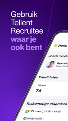 Optimaliseer talentwerving met onze mobiele app. Deze app biedt perfecte ondersteuning voor jouw Tellent Recruitee platform, waarmee teams cruciale recruitmenttaken overal kunnen uitvoeren. Ideaal voor organisaties van elke omvang, van start-ups tot grote ondernemingen.