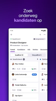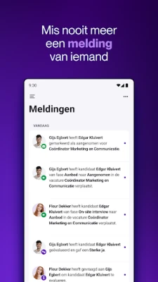 Optimaliseer uw wervingsproces en blijf altijd verbonden met de cruciale aspecten van talentacquisitie met de mobiele ervaring van Tellent Recruitee. In de snel evoluerende wereld van recruitment is het essentieel om flexibel en efficiënt te kunnen opereren, ongeacht uw locatie. Tellent Recruitee is speciaal ontworpen om professionals zoals u te voorzien van de middelen die nodig zijn om proactief te werven, het overzicht te behouden en naadloos samen te werken, allemaal vanuit één intuïtief platform. Ervaar een gestroomlijnde benadering van talentmanagement die zich aanpast aan uw dynamische werkdag.