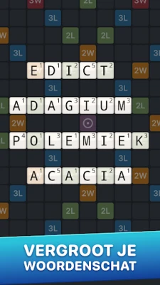 Betreed de fascinerende wereld van Wordfeud, waar jouw liefde voor taal en strategisch inzicht volledig tot hun recht komen. Dit intrigerende puzzelspel nodigt je uit om je vaardigheden te meten met vrienden, kennissen of volledig nieuwe tegenstanders. Op een klassiek 15x15 speelbord is het jouw missie om met slim geplaatste letters woorden te creëren. Optimaliseer je score door vakkundig gebruik te maken van de speciale vakjes die de waarde van letters of hele woorden verdubbelen of zelfs verdrievoudigen, waardoor elke zet telt en het scorebord tot het uiterste wordt uitgedaagd.